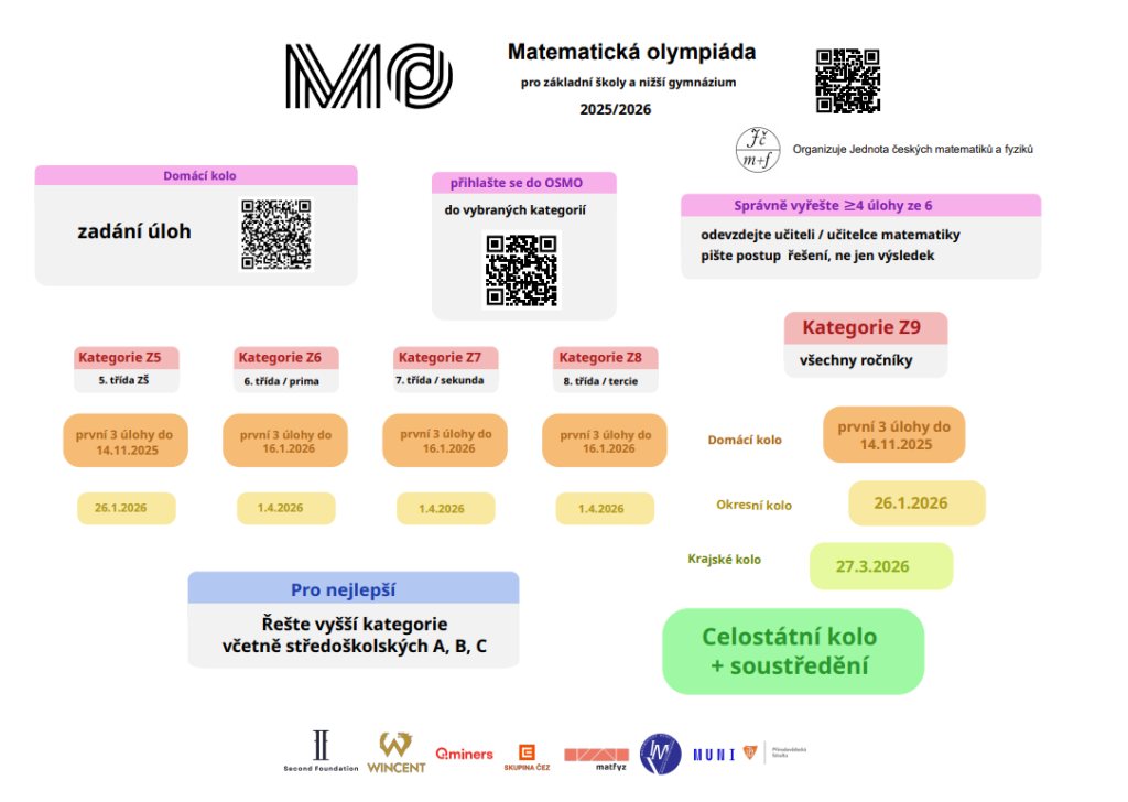 Termíny konání soutěžních kol pro základní školy a nižší gymnázia ve školním roce 2025/2026: